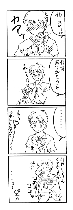 で、花を持っていた三男が突然その花で自分の身体をくすぐって大笑い。